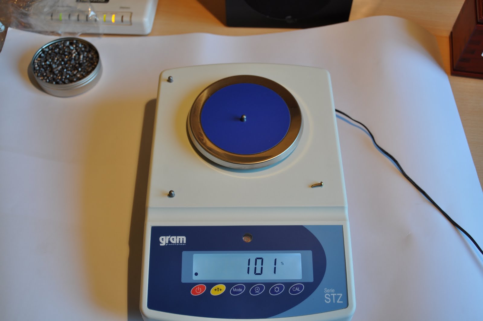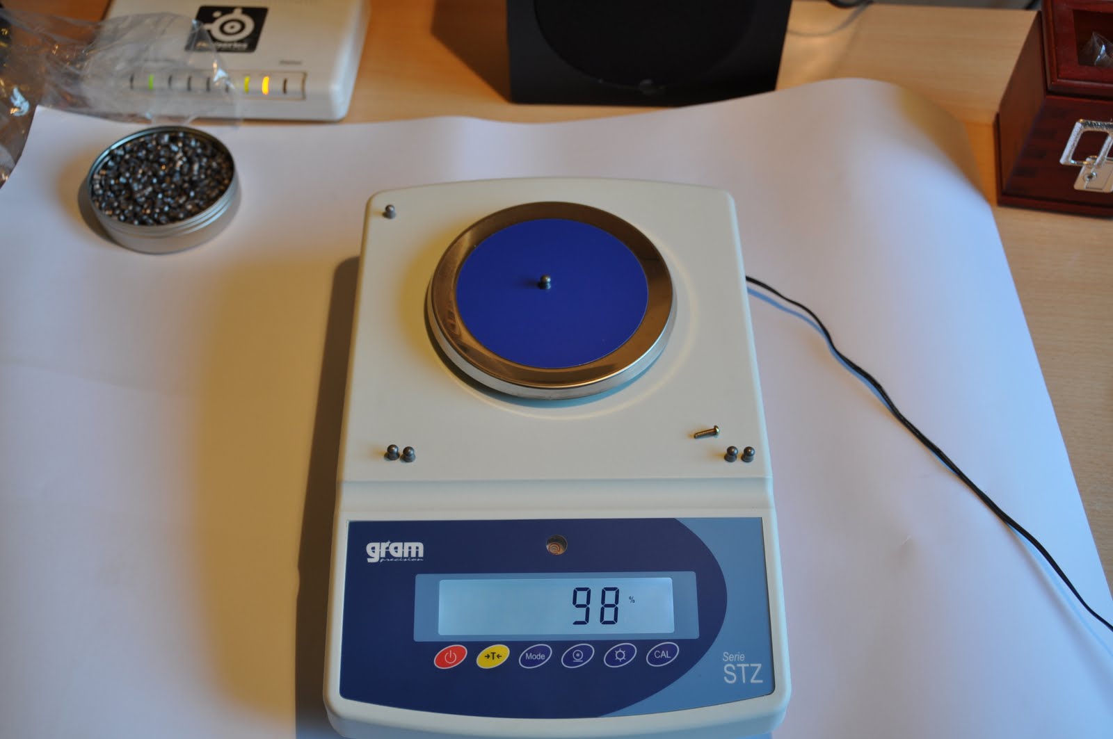 Balanzas que considero insuficientes para el tipo de tiro que practicamos ya que mucha munición del .177 pulgadas (4,5 milímetros) esta por debajo de 0,5 gramos teniendo, por tanto solo podemos optar a controlar centésimas de gramo siempre y cuando la repetición de la balanza sea extraordinaria (y, no es el caso).
